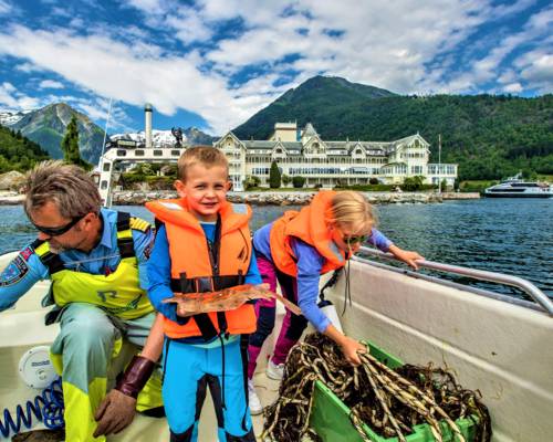 Sognefjord fishing adventure: learn angling, trolling, and netting. A scenic trip for family bonding. Experience Viking pride and the thrill of the fjords.
