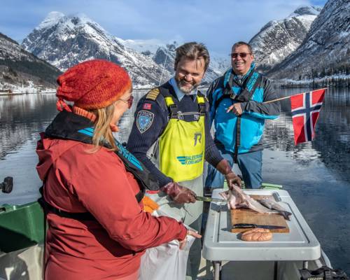 Sognefjord fishing adventure: learn angling, trolling, and netting. A scenic trip for family bonding. Experience Viking pride and the thrill of the fjords.